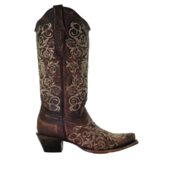 Corral Boots Corral Ladies Lisa Brown Crater Bone Embroidery Shortie Boots A3190